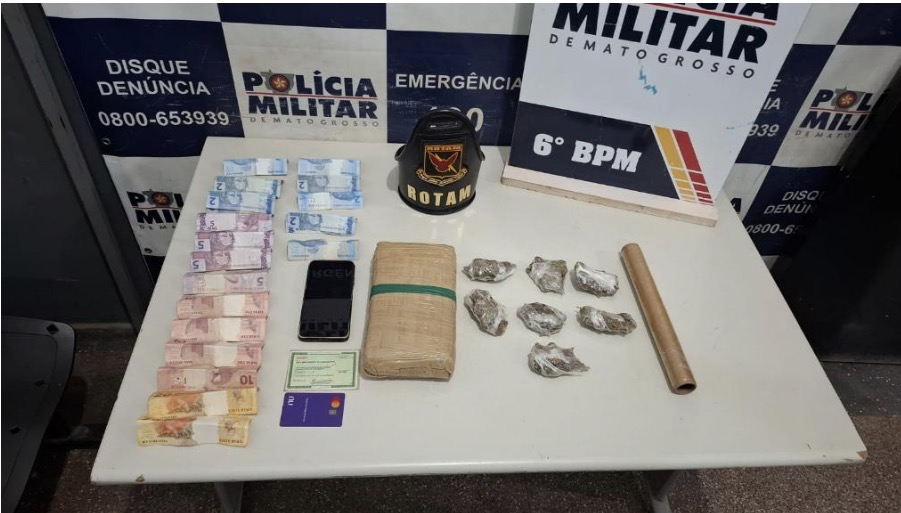 Além disso, o menor confessou que havia mais drogas em sua residência, localizada no bairro Jardim Imperial. Os policiais militares se deslocaram até a residência e encontraram várias outras porções de maconha, um tablete do mesmo entorpecente, R$ 126 em espécie e materiais para embalagem e comercialização das drogas. O menor foi conduzido à delegacia para registro do boletim de ocorrência.